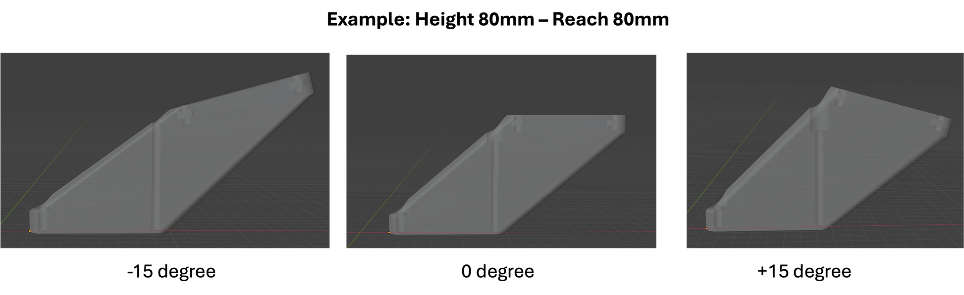 Please reach out for individual height, reach or angle positions! We're happy to built your individual setup!